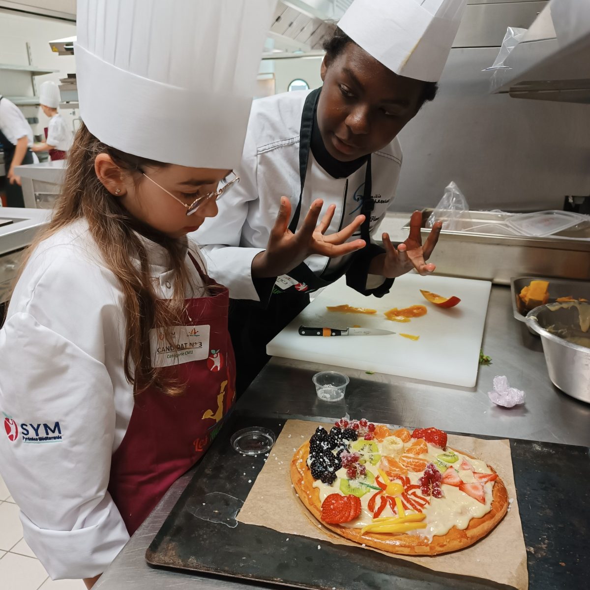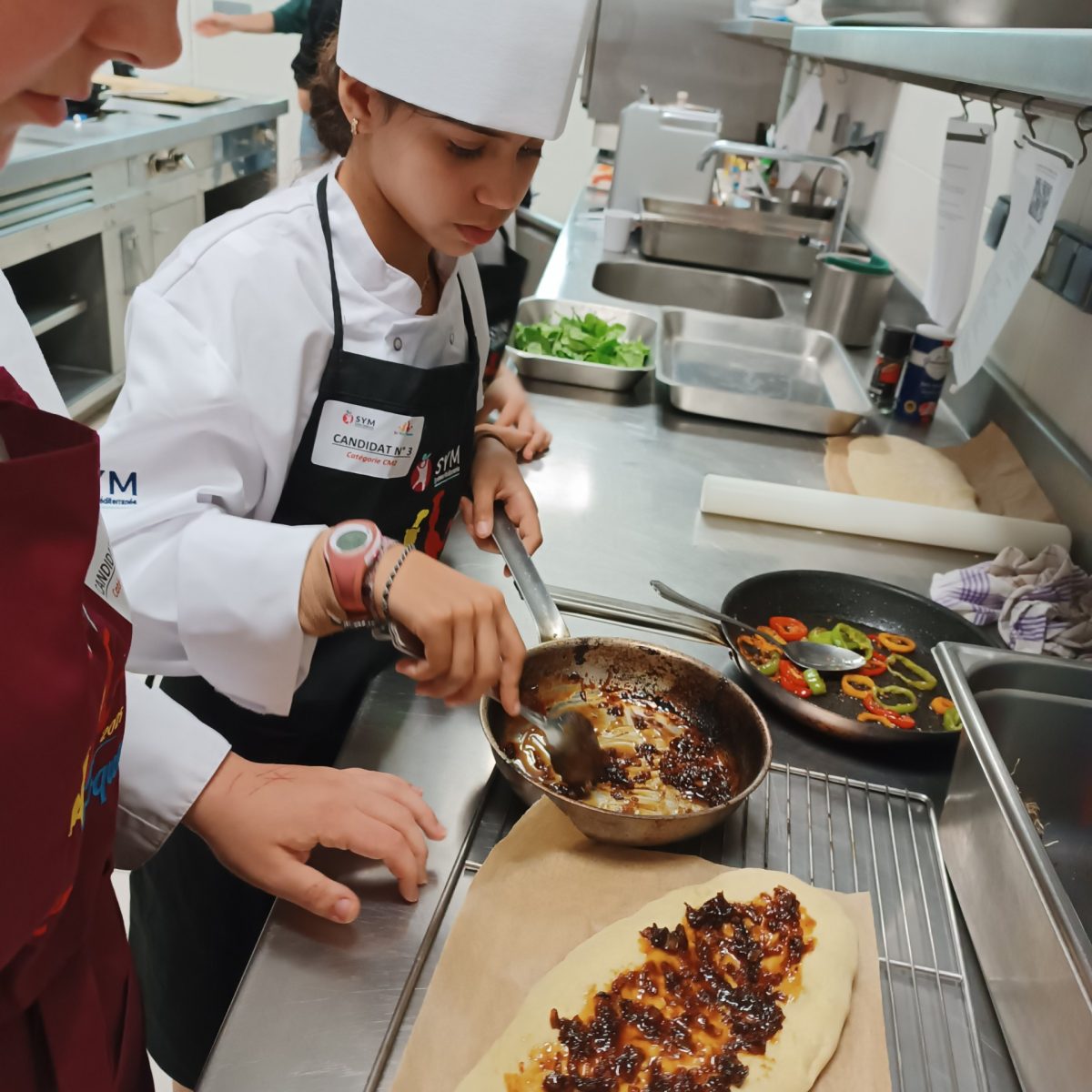 Le matin , se sont les candidats en CM2 , pour les coques salées à base de légumes et l’après midi , se sont les CM1 pour les coques sucrées à base de fruits.