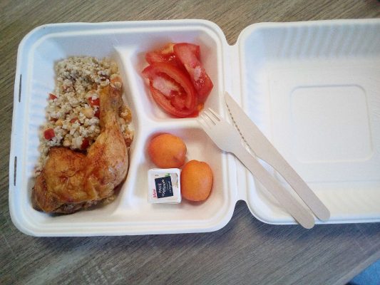 L’offre Box étant, à la différence du pique-nique, un repas froid avec : une entrée (crudités), un apport protéinique (viande, poisson, œuf), une salade composée (à base de féculents), un produit laitier, un fruit, ainsi qu’une portion de pain.